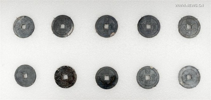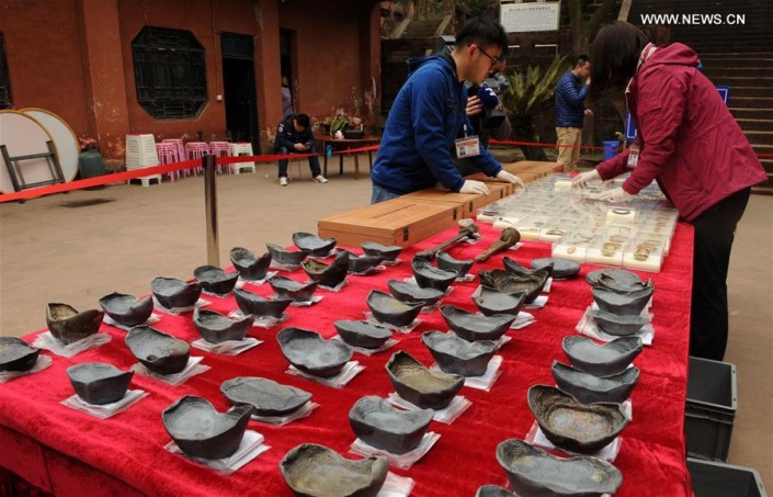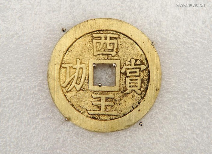 "Среди находок - огромное количество золотых, серебряных и бронзовых монет, ювелирные украшения, а также предметы, указывающие на присутствие армии: железные мечи, ножи и копья", - говорит Гао Далунь, директор Института культурного наследия и археологии провинции Сычуань.