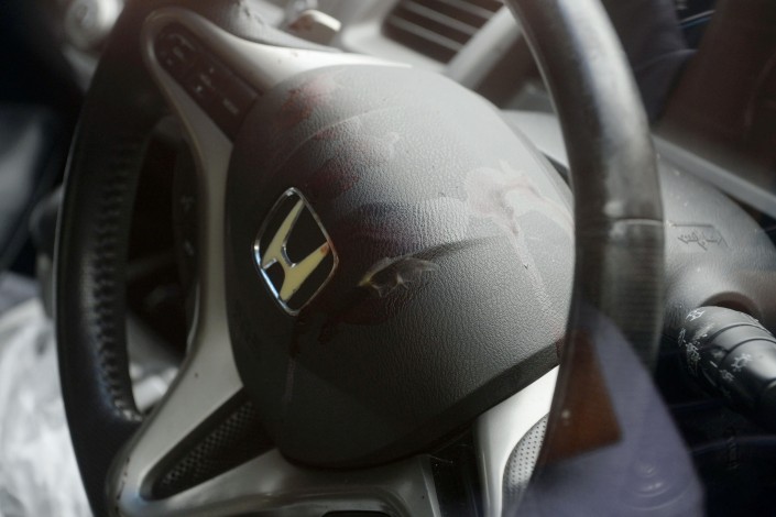 Кровь на руле автомобиля, на котором Сатоси Уэмацу приехал в полицию.