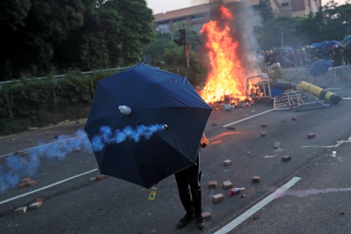 Массовые протесты, спровоцированные рассмотрением закона об экстрадиции, проходят в Гонконге с начала июня. Гонконгская оппозиция ранее планировала провести 1 октября крупный марш протеста, но заявку на его проведение отклонили. Это не остановило протестующих, которые вышли на улицы и вступили в столкновения с полицией. Демонстранты собрались в разных районах города, они ломают светофоры и дорожные ограждения и выкрикивают лозунги.