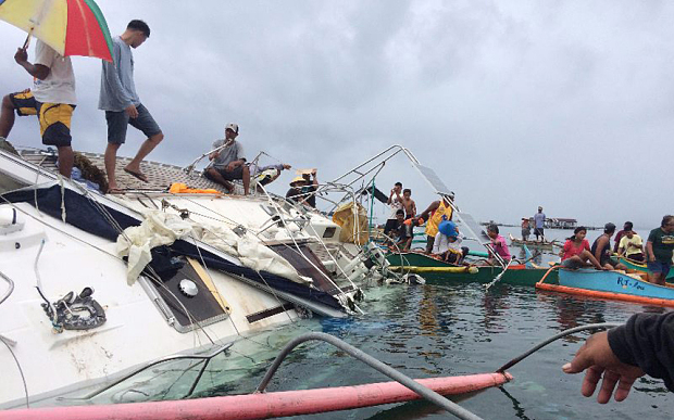 Тело моряка нашли на борту этой полузатопленной 12-метровой яхты. © Barobo Police Station