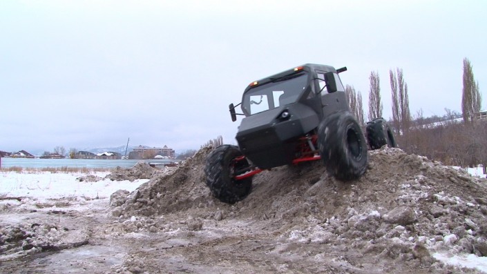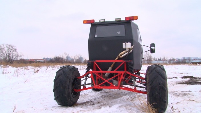 На создание вездехода у разработчиков ушло около девяти месяцев. "Изначально проектом занимались четыре человека. Сомнения, конечно, были, но когда видели, что получается, вера в это дело приходила. Раму собирали в подвале, там же ее варили. Основные агрегаты набрасывались на улице под навесом", - рассказал автолюбитель.