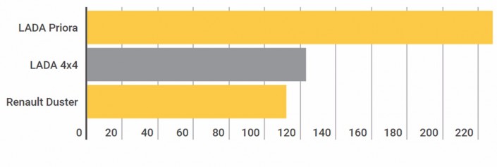 Автомобилисты из нефтяной столицы Казахстана в 2015 году отдавали предпочтение машинам марки LADA, в частности модели Granta. В 2016 году их вкусы практически не поменялись. Разве что моделью, которую берут чаще всего, оказалась не бюджетная Granta, а более дорогая Priora. Внедорожник 4×4 - это еще одна Lada в топе продаж Атырау. Она разместилась на втором месте.