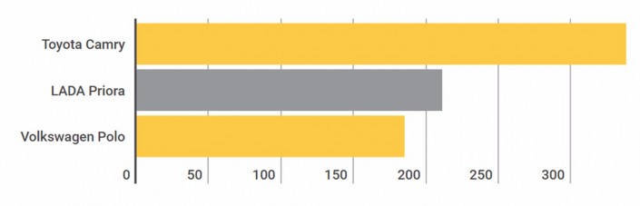 На столицу в этом году пришлось 17,7 процента всех продаж автомобилей в Казахстане, это, кстати говоря, чуть больше прошлогодних показателей (тогда было около 16  процентов). При этом, если раньше астанчане также предпочитали Hyundai Accent, то сейчас лидером является Toyota Camry. Ее показатели (338 машин) практически вдвое превышают результат корейского седана в 2016 году.