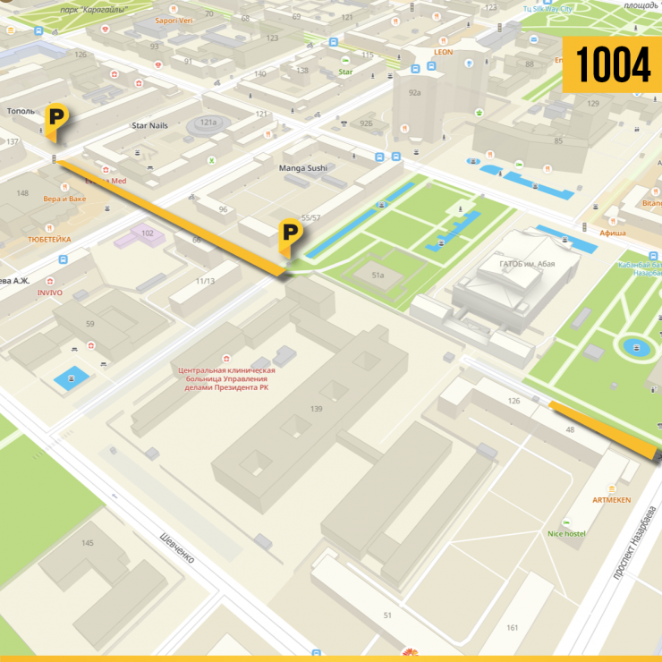 "В связи с окончанием реконструкции с 8 февраля возвращается к работе платная парковка по улице Жамбыла между проспектом Желтоксан и Байсеитовой, а также небольшой участок западнее проспекта Назарбаева. Номер зоны: 1004", - говорится в сообщении.