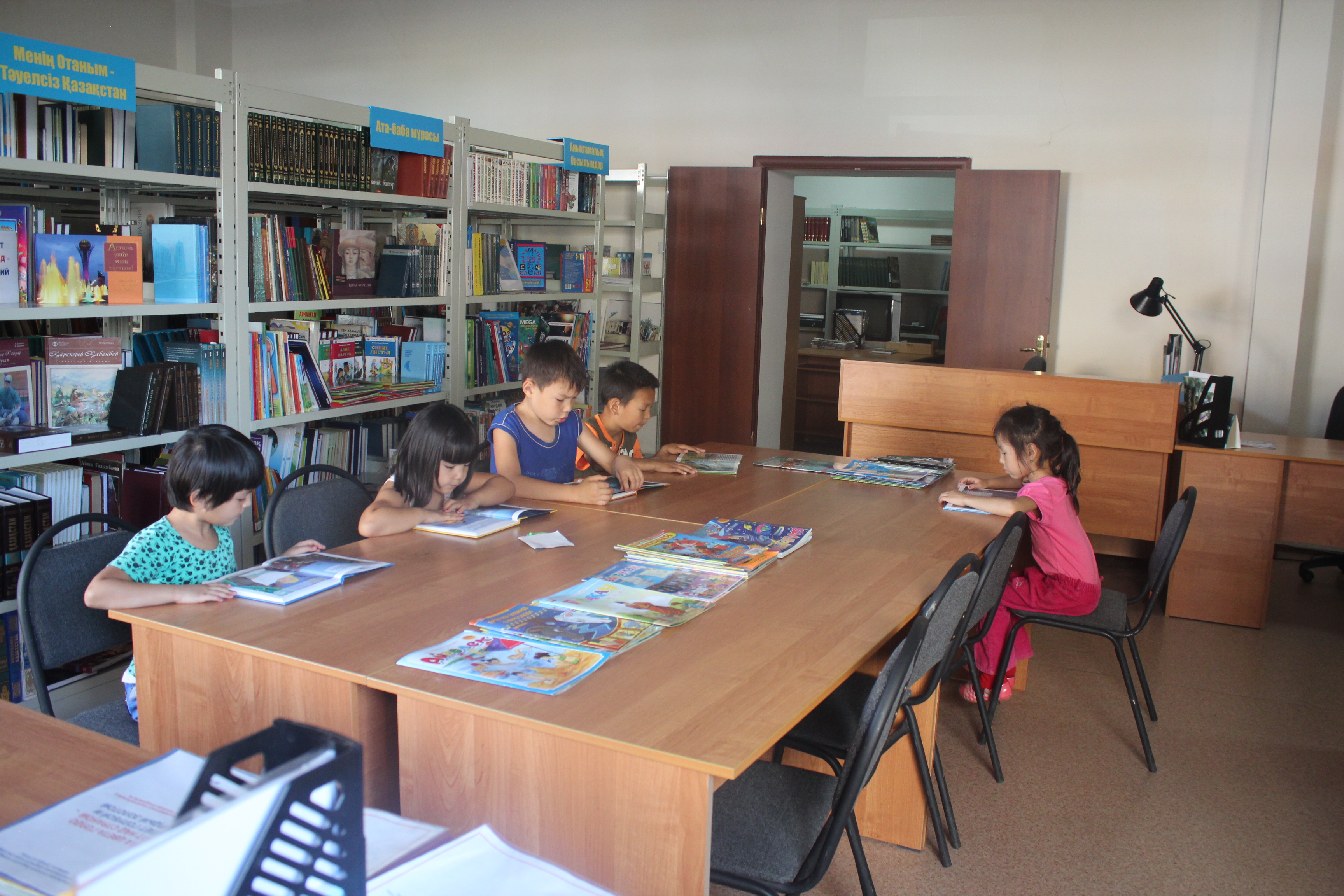 А еще мы сходили в детскую библиотеку, чтобы узнать, насколько популярно чтение среди школьников. К нашему удивлению, в небольшом читальном зале мы увидели нескольких маленьких посетителей. Среди них были даже дошколята, которые просто рассматривали картинки.