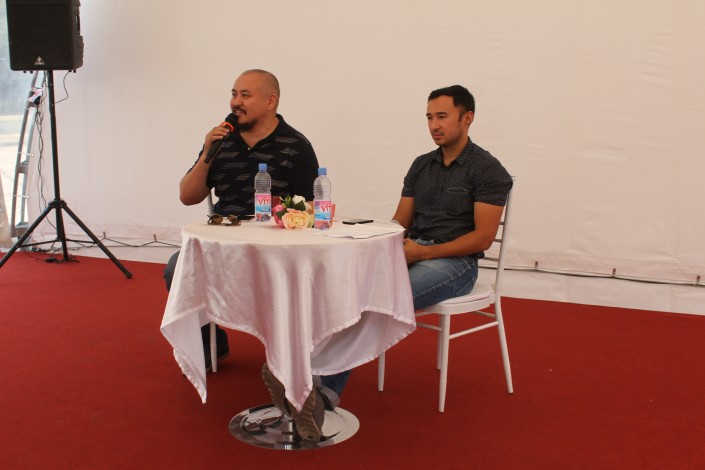 Актеры Ерден Телемисов и Ануар Нурпеисов на встрече с читателями. Фото©Алишер Ахметов
