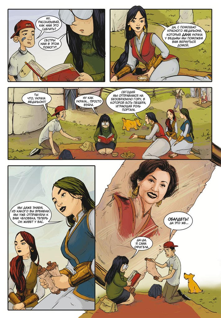 Главные персонажи комикса - современные подростки, брат с сестрой Дана и Нурлан, а также одноклассница Даны - Настя. По сюжету комикса они попадают в сказочный мир, куда их заманивает синий кот Хан. В новом мире школьникам предстоит встретиться с ведьмами, великанами и драконами. Бороться со сказочными существами помогать детям будут три сестры - Меруерт, Дарига и Алия, а также золотоволосый мальчик по имени Тотамбай - к слову, персонаж народной казахской сказки.