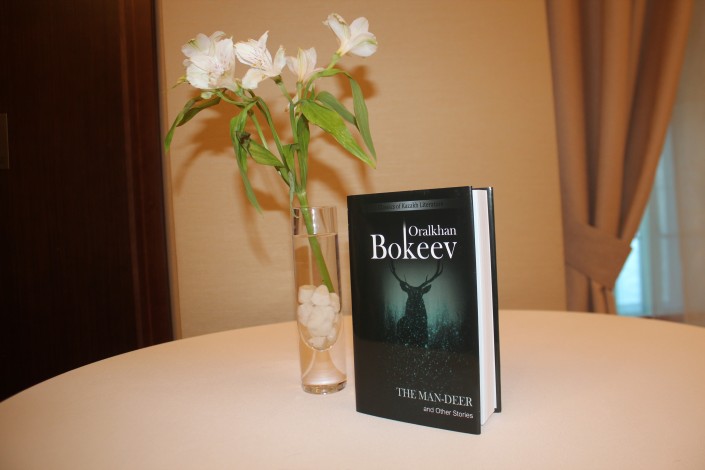 "Сегодня для всей культуры Казахстана, для литературной общественности огромный радостный день. Именно сегодня из Лондона привезли книгу "Человек-олень" выдающегося казахского писателя Оралхана Бокеева, которого перевели мастера своего дела Саймон Гейган и Саймон Холлингсворт. Они мне сегодня привезли первые экземпляры. Первый раз тираж небольшой: 250-300 экземпляров. Но самая главная наша задача - размещение книги в мировом интернет-магазине Amazon. Партнером проекта стала компания "Казахтелеком", за что им и лично председателю правления Куанышбеку Есекееву я хотел бы выразить благодарность", - сказал Бигельды Габдуллин журналистам в ходе мероприятия.