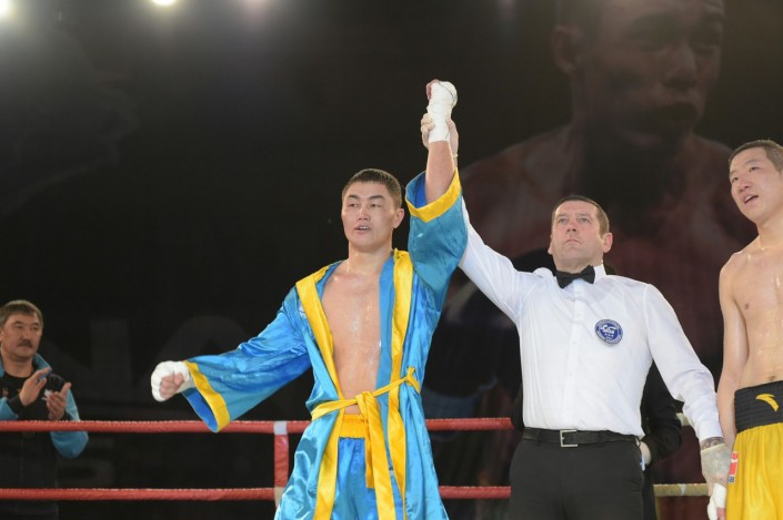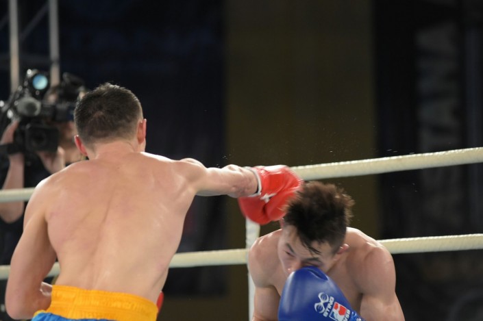 В четвертом бое матчевой встречи на ринг вышли Сапарбай Айдаров и Минганг Жао в весе до 75 килограммов. Казахстанец был сильнее - 3:0.