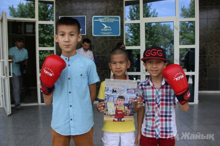Чемпион мира по версиям WBA (Super), IBO, IBF, WBC в среднем весе казахстанский боксер Геннадий Головкин встретился с юными спортсменами в Атырау, передает корреспондент Tengrinews.kz.