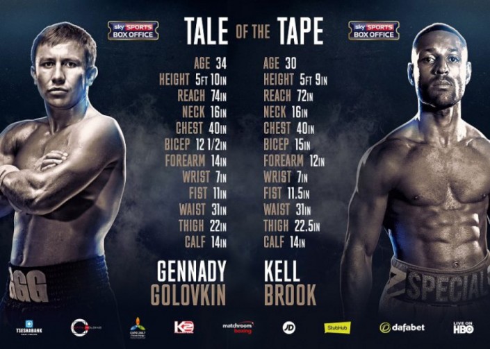 "Я готов к двенадцати раундам, и я готов устроить уличную драку на ринге", - заявлял ранее казахстанский боксер. Келл Брук же подчеркнул, что собирается шокировать мир и Головкина. "Уже после первого джеба от меня он поймет, что дерется не с полусредневесом, а с тем, кто всерьез намерен забрать его пояса себе. Это будет настоящая битва", - говорил английский боец. Позже он добавил, что "с нетерпением ждет, когда ударит GGG по лицу".