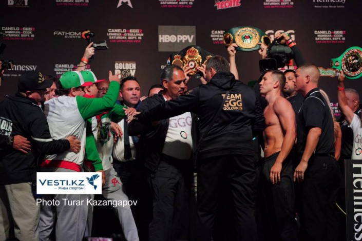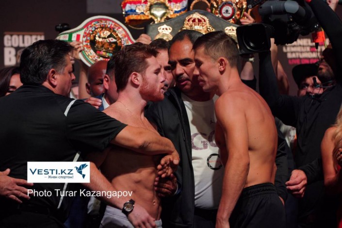 Головкин оказался тяжелее "Канело" на официальном взвешивании перед боем Фото Турар Казангапов©