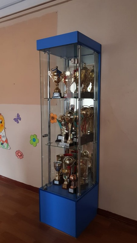 Заместитель директора по учебной части Венера Линкер рассказала, что эту школу Головкин окончил ровно 20 лет назад. В школе уже много лет открыт уголок чемпиона - спортсмены из числа учеников школы приносят сюда свои награды и посвящают их боксеру-земляку.