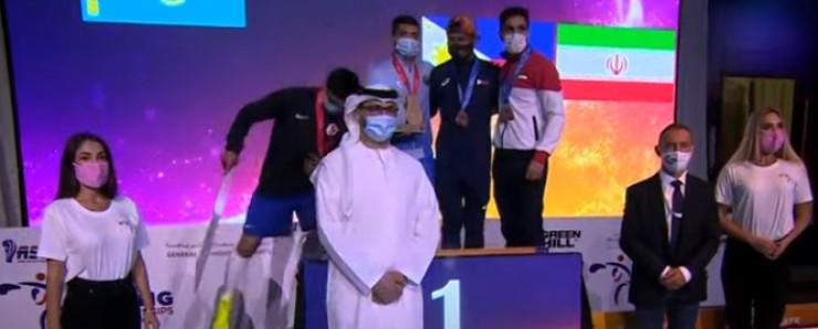 Быструю фотографию сделал Абильхан Аманкул. В финале казахстанец был признан проигравшим в поединке с соперником из Узбекистана, а во время награждения лишь на мгновение поднялся к другим призерам. Через несколько секунд и Аманкул покинул пьедестал.