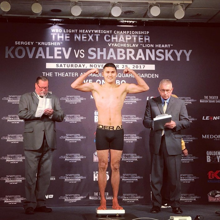 Как пишет спортивный портал Vesti.kz, казахстанец провел поединок в андеркарте вечера бокса, в главном бою которого россиянин Сергей Ковалев и украинец Вячеслав Шабранский разыграют вакантный титул чемпиона мира по версии WBO.