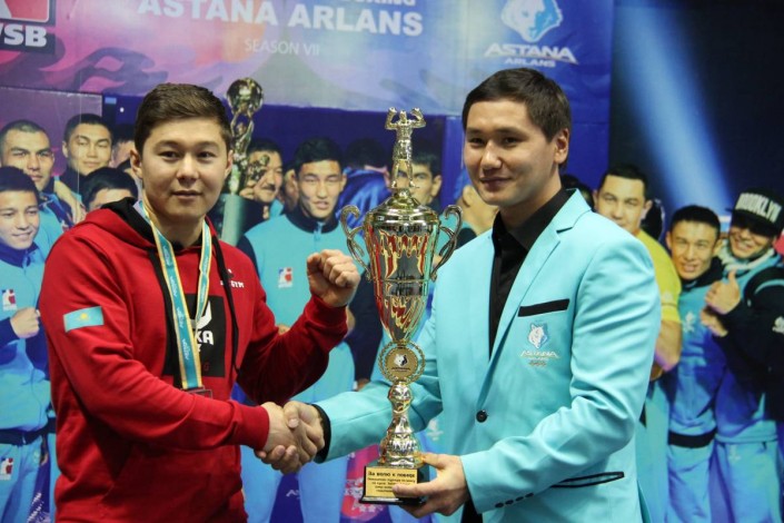 Предварял спортивный вечер в Астане розыгрыш Кубка клуба "Астана Арланс" среди любителей и болельщиков. Трехдневное состязание прошло в семи весовых категориях. Итоги дебютного турнира подвел генеральный директор и олимпийский чемпион Бахтияр Артаев.