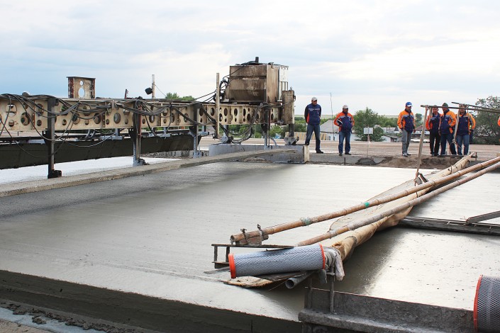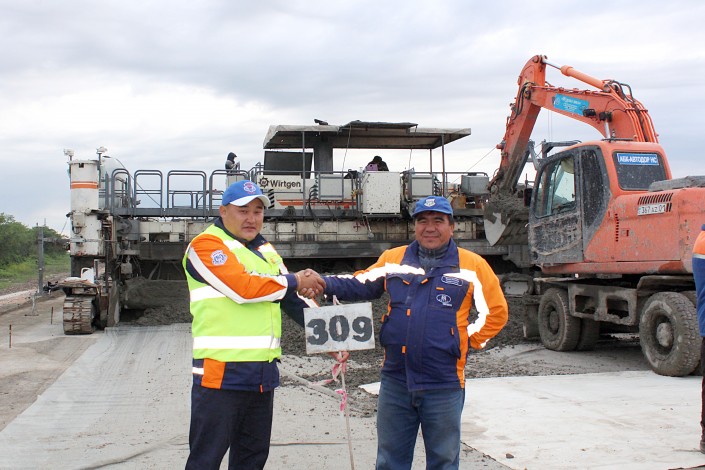 Команда проекта работала с большой отдачей и к концу июня текущего года выполнила поставленную цель - завершила работы по укладке цементобетонного покрытия прямого хода 21 километра четырехполосной автодороги.
