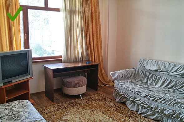 Если вы снимаете днем, оконные проемы лучше закрыть. В противном случае контровой свет с улицы перебьет освещение в комнате и сделает ее темной.