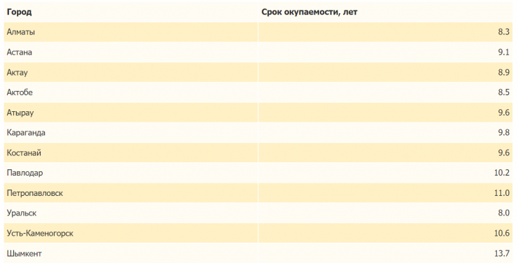 На втором месте - Алматы, где компенсировать затраты можно за 8 лет и 3 месяца.