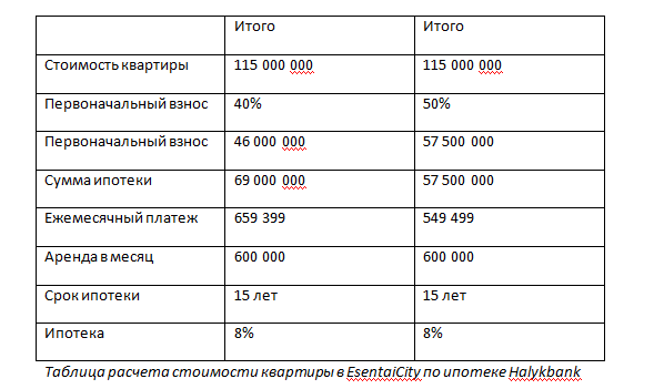 Для примера возьмем квартиру площадью 120 квадратных метров за 90 миллионов тенге и с расчетом стоимости мебели и ремонта в размере 25 миллионов тенге.