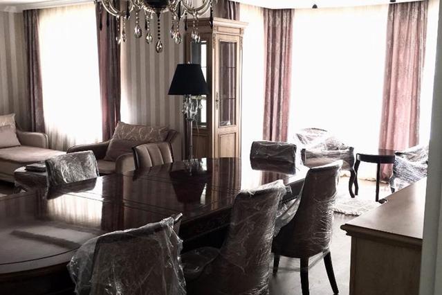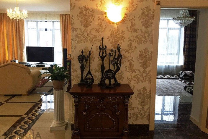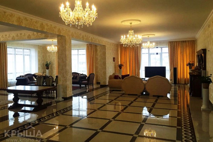 За аналогичную сумму сдается в аренду шестикомнатный особняк в районе пересечения улиц Сарайшык и Кабанбай батыра, в коттеджном городке закрытого типа. Дом в три уровня общей площадью 670 квадратных метров и участком 15 соток. Состоит из пяти спален, гостиной, холла, кухни и столовой. Территория огорожена, имеется охрана. Полностью укомплектован мебелью и бытовой техникой. Имеется бильярдная комната и сауна. Во дворе работает садовник, установлена зона барбекю и беседка.