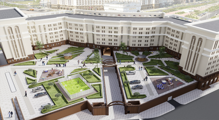 МЖК "Triumph Avenue" - это уникальный жилой комплекс, огибающий новую площадь. Расположен в Есильском районе, в новом административном центре столицы. Комплекс отличают современное инженерное оснащение всего здания, закрытая территория, системы контроля доступа, видеонаблюдения и продуманная система безопасности объекта. Комплекс состоит из 5 жилых блок-секций, высотой 7-9 этажей. Также предусматривается паркинг на 250 машиномест. Реализация проекта осуществляется застройщиком в рамках завершения единой архитектурной композиции главного монумента страны - триумфальной арки "Мәңгілік Ел".