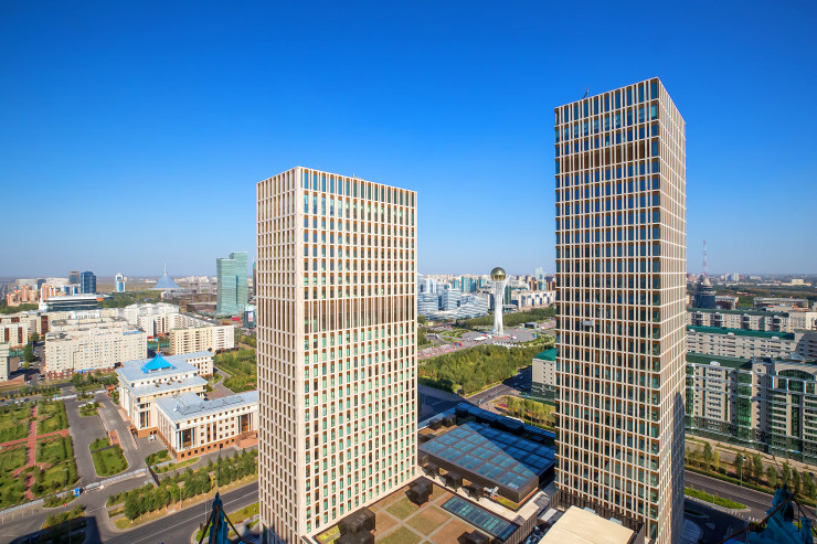 Отель расположен в многофункциональном комплексе Talan Towers – новой достопримечательности столицы, соединившей первый в Нур-Султане люксовый отель The Ritz-Carlton, The Ritz-Carlton Residences, элитный бизнес-центр класса А и торговую галерею. Инвестор проекта, группа компаний Verny Capital, является одной из крупнейших компаний Казахстана, работающих в сфере прямых инвестиций, в ее портфель входят также The Ritz-Carlton, Moscow и The Ritz-Carlton, Vienna. Проект был реализован в соответствии со стандартами зеленого строительства международной системы LEED. The Ritz-Carlton, Astana гармонично вписан в пространство, окружающее узнаваемый символ Нур-Султана - монумент "Байтерек".