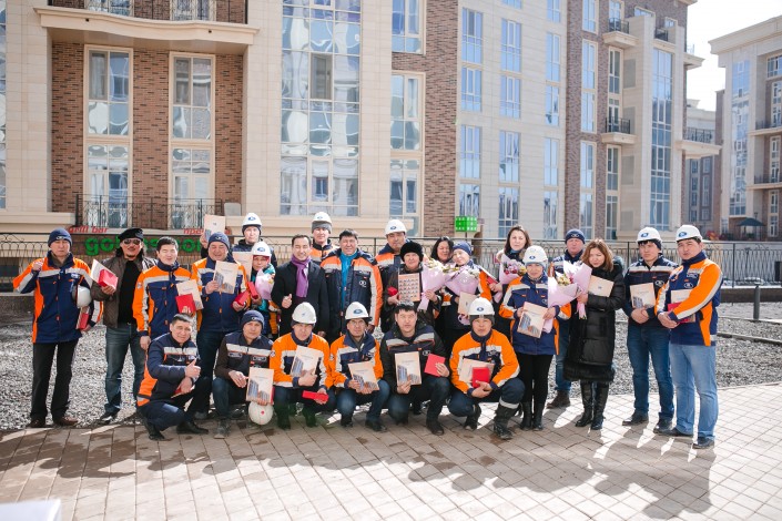Не только жители получили приятные подарки в виде ключей от своих квартир. Команду проекта приехали поздравить председатель правления Холдинга BI Group Development Амангельды Омаров и генеральный директор дивизиона "МЖК-Премиум" Арман Ахметов. Они вручили памятные именные стелы и виньетки. Как отметил Амангельды Омаров, со строительством очередного дома оттачивается мастерство команды и становится все меньше замечаний со стороны клиентов, а тот факт, что более 70 квартир из 104 уже переданы клиентам, говорит об успешности проекта.