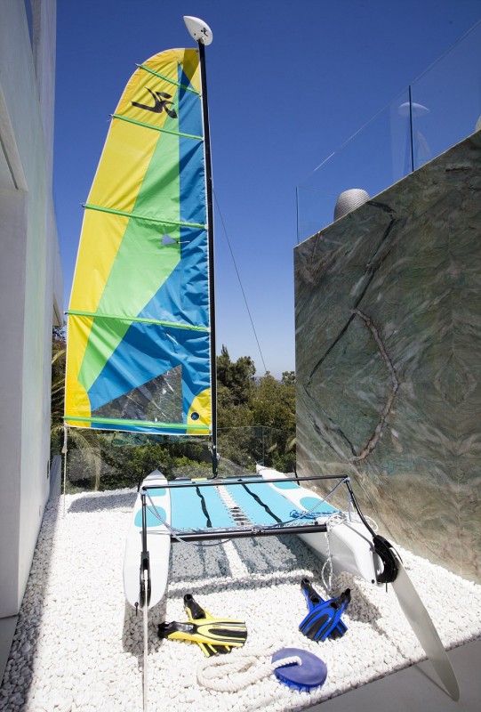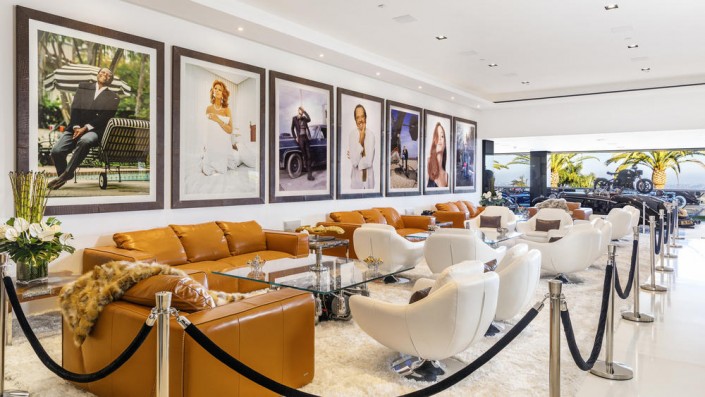 Вместе с домом покупатель получит коллекцию автомобилей общей ценой в 30 миллионов долларов, среди которых есть как раритетные авто 1930-х годов, так и современные суперкары, такие как Bugatti. На крыше находится вертолетная площадка с частным вертолетом.