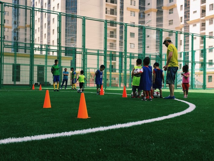 Детям постарше тоже не придется скучать. Во дворе есть два футбольных поля с качественным искусственным газоном. В летний сезон организовываются футбольные секции для самых маленьких жителей ЖК, где с ними занимаются профессиональные тренеры.