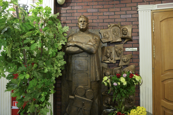 Цветы у бюста народного артиста СССР режиссера Эльдара Рязанова, установленного в фойе киноклуба "Эльдар". Фото: РИА Новости