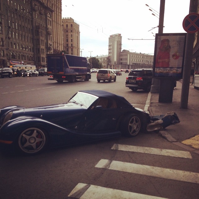 Фотографии с места происшествия актер выложил на своей странице в Instagram. "Все! Нету Моргана!" - написал он и добавил: "Припарковался". Модель, на которой передвигался Куценко, называется Morgan Aero 8.