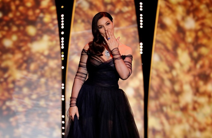 Зону декольте Белуччи украсила крупными драгоценностями с бриллиантами. Но отнюдь не блеск дорогого ювелирного изделия привлекает внимание. Сквозь прозрачную ткань платья можно разглядеть и пышную грудь, и крутые бедра звезды. При этом богиня мирового кино обошлась без боевой раскраски.