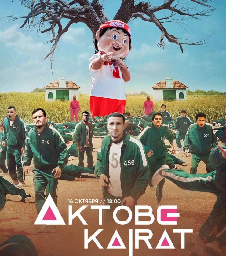"Ақтөбе" мен "Қайрат" клубтары желіде осы сериалға қатысты мемдер жариялап, бір-біріне әзілдеді. Матч алдында ақтөбелік клубтың баспасөз қызметі желіде "Игра в кальмарадағы" кейіпкерлер орнына өз футболшыларын қойып, "Ойнаймыз ба?" деп жазды. Бұл "Қайрат" клубына арналған әзіл болатын.