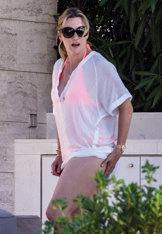 41-летняя британская актриса прилетела во Францию без детей и супруга. Папарацци застали знаменитостей во время непринужденного общения и принятия солнечных ванн у бассейна. На Кейт были купальник кораллового цвета и белая туника. Образ дополнили солнцезащитные очки, золотые часы и легкие браслеты. 42-летний Ди Каприо последовал примеру подруги, выбрав пляжный образ. Он решил остаться в одних шортах.