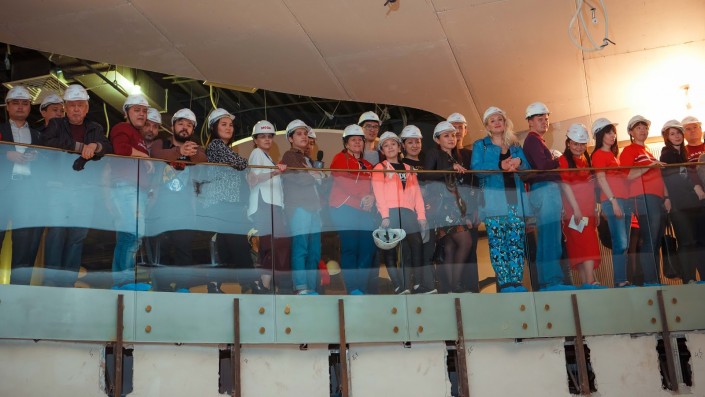 Накануне открытия руководство сети кинотеатров пригласило журналистов и блогеров на экскурсию по завершающейся стройке. По словам Бакытжана Мусатаева, генерального директора сети кинотеатров Chaplin Cinemas, в семи залах зрителей будут ждать балконы с местами повышенной комфортности, детский зал со специальными пуфиками и диванами вместо обычных кресел, игровая зона и помещения для проведения детских праздников. Особый интерес участников экскурсии вызвал киноконцертный зал площадью 600 квадратных метров на 346 посадочных мест со стационарной сценой и экраном 25 на 13,5 метра.