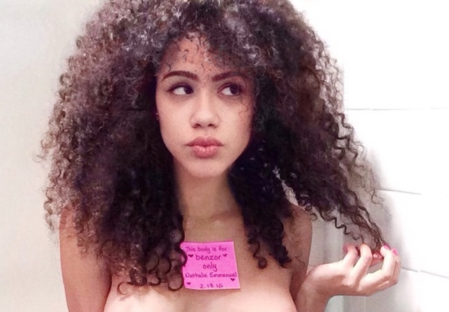 По предварительным данным, снимок был похищен из личного архива актрисы. На фото обнаженная Эммануэль позирует на камеру, на ее теле виден стикер с надписью "Это тело принадлежит только Бензору".