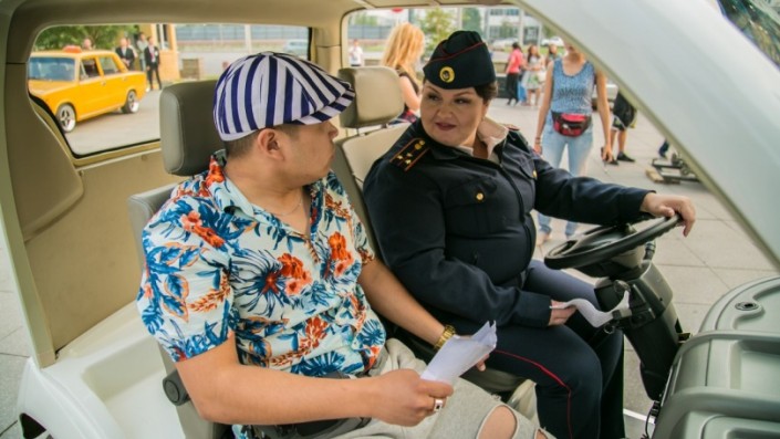 4. В кастинге на роль гаишницы приняли участие 54 претендентки, и даже Ольга Кортункова рассматривалась на эту роль. Но в результате властную гаишницу Наташу сыграла не менее властная Наташа, бывший редактор итоговой программы "Хабара". Кстати, продюсер ей запретил худеть, чтобы не потерять свою изюминку.