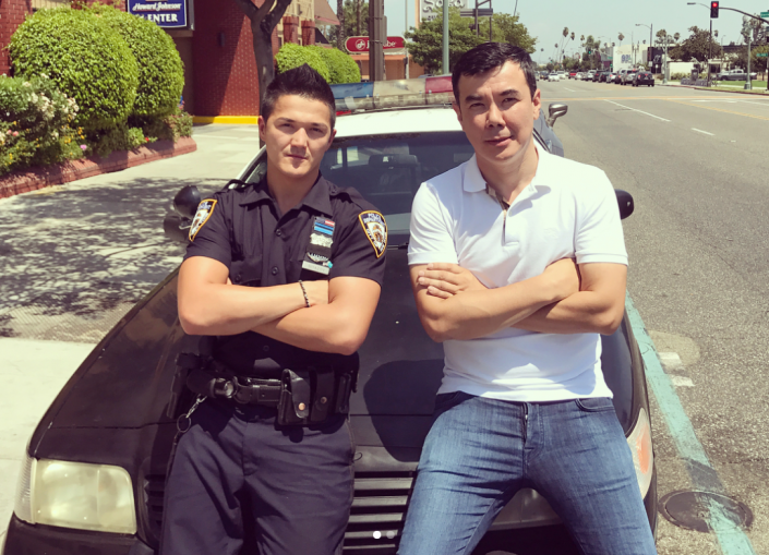 В новой картине сыграл американский полицейский из Шымкента Димаш Ниязов. Коянбаев рассказал, что роль писали специально для него. Для съемок Димашу пришлось отпроситься с работы и прилететь в Лос-Анджелес из Нью-Йорка.