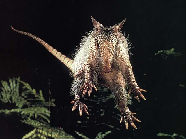 Броненосец резко распрямляет все четыре лапы и неожиданно подпрыгивает на довольно впечатляющую высоту. Ошеломленный, а то и больно ушибленный, враг обычно предпочитает свалить куда подальше от этого снаряда. Ну его, нечисть какая-то.