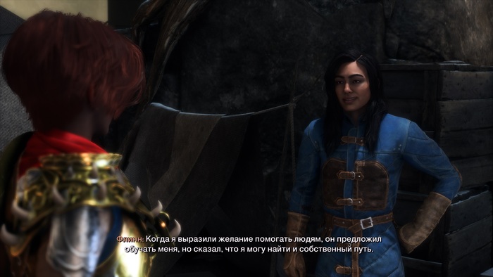 Короче вся такая положительно-хорошая и активная. Жаль, правда, не совсем понятно, а на каких основаниях она занимается тем, что занимается. За счёт чего живёт. Кто оказывает ей покровительство (ну, чтобы те же венатори не прирезали во сне). Как вообще работает вертикаль власти в Портовом Городе, да и Тевинтере тоже…