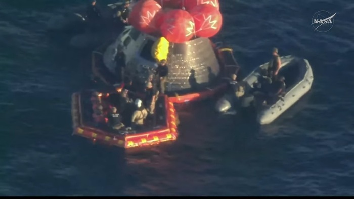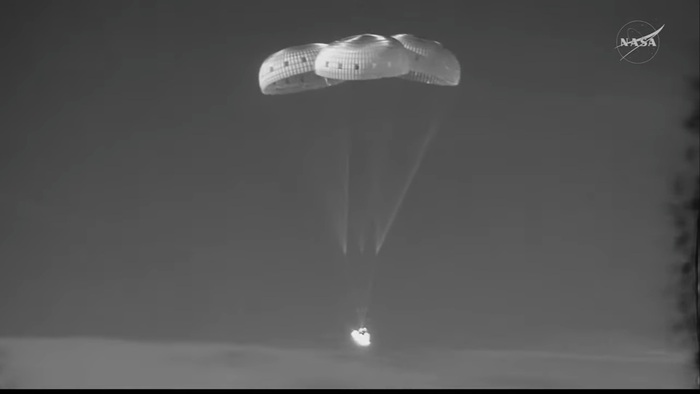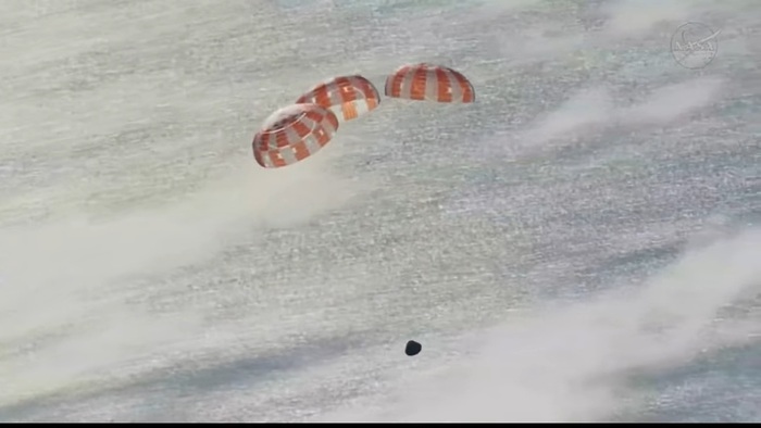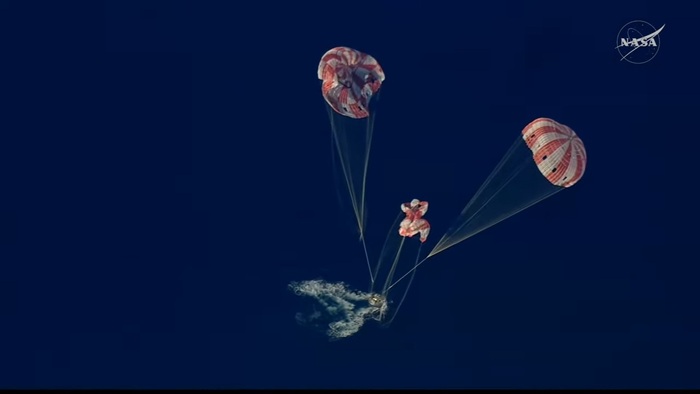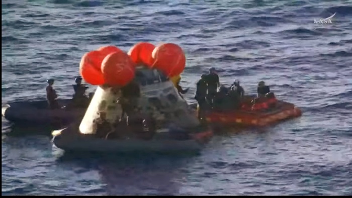 Это будет финал их 10-дневного путешествия. Капсула войдет в атмосферу на скорости около 11 км/с, нагреется до 2800°C, а затем раскроет парашюты над Тихим океаном у побережья Сан-Диего . Там их уже будет ждать военный корабль USS John P. Murtha .