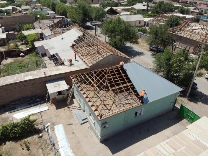 Практически 90 процентов рабочих - это жители Туркестанской области. Здесь тоже много рабочей силы. И часть специалистов, к примеру, кровельщиков, из регионов привезли. Очень много из Шымкента рабочих приехало. Тут даже можно местным жителям устроиться на работу, и им заплатят за то, что они свои дома ремонтируют.