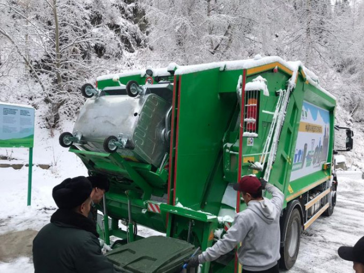 Вывоз отходов осуществляется специальной техникой, которая была спроектирована по нашему заказу на одном из предприятий в РК. Эти уникальные двухсекционные мусоровозы предназначены для горной местности и позволяют за один рейс забирать ТБО всех фракций. По такому примеру у нас на очереди другие национальные парки и объекты.
