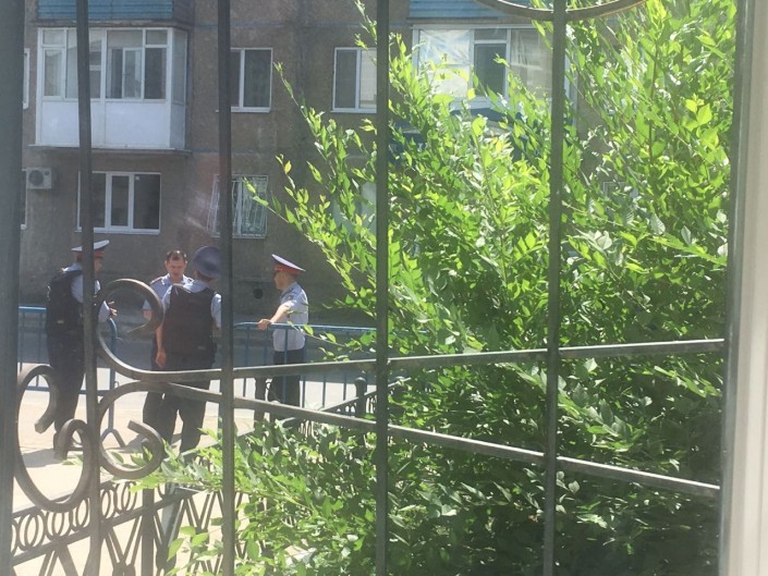 Во время оглашения приговора Еркина Избасара удалили из зала суда за нарушение порядка.