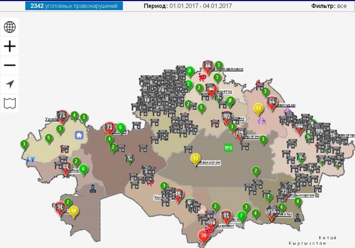 Наименьшее количество преступлений произошло в Мангистауской области. Там зафиксировано всего 60 уголовных правонарушений.