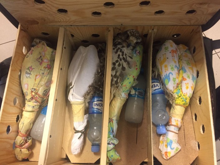 На рейсе G9-252 "Астана – Шарджа" пограничный наряд изъял контрабандный груз с живыми соколами-балобанами во время его погрузки на самолет.