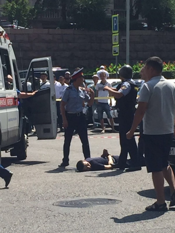 Очевидцы присылают фото с места задержания стрелявшего в Алматы в редакцию Tengrinews.kz. Сообщается, что мужчина задержан в районе КБТУ.