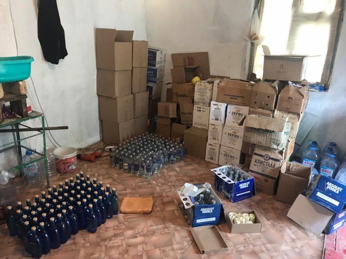 В цехе, как сообщается, нашли 800 бутылок следующих брендов: Absolut, "Хортица", "Воздух", "Мороша", "Бульбаш", "Царская", "Зерно". Также, по данным ведомства, изъяты акцизные марки сомнительного происхождения в количестве 2 100 штук, спирт в количестве 160 литров, пустые бутылки и крышки, а также 25-литровая бочка, предназначенная для изготовления и розлива алкогольной продукции.