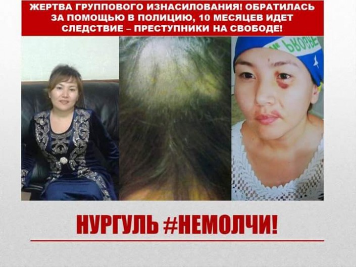 Жестокое надругательство произошло в августе 2016 года в Балхаше. По словам Нургуль Кусылбековой, двое мужчин вывезли ее на кладбище, поочередно насиловали и избивали лопатой. Вдоволь поиздевавшись, подозреваемые якобы заставили ее рыть могилу. Женщине чудом удалось спастись, и она обратилась в полицию. Однако несмотря на все улики, дело почему-то сначала затянули, а потом и вовсе закрыли. При этом, со слов пострадавшей, ее о завершении расследования никто даже не предупредил. К тому же часть собранных материалов досудебного расследования "чудесным образом" исчезла, заверяет Нургуль.
